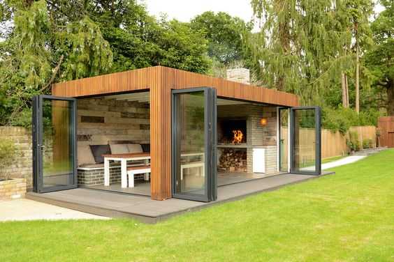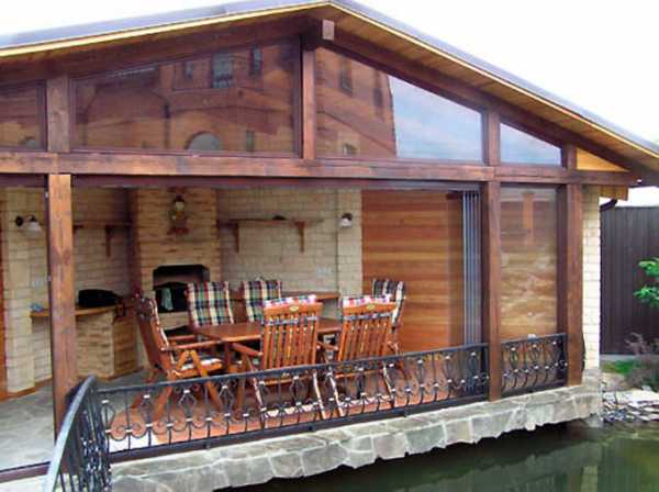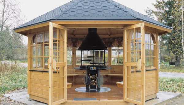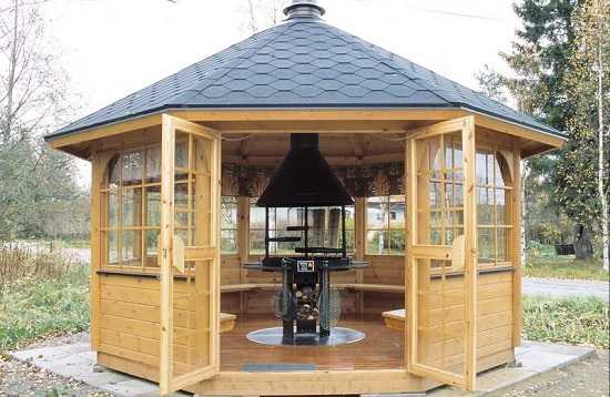 Удобно возвести конструкцию с мангалом, которая легко трансформируется из закрытой постройки в открытую.