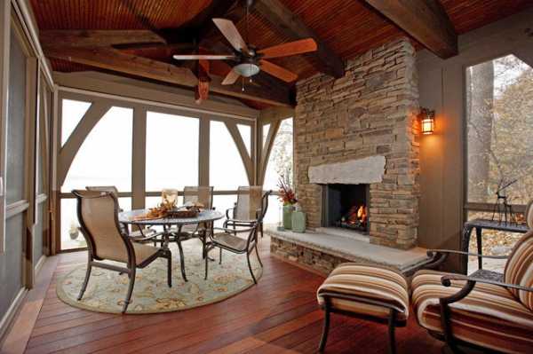 - только закрытое помещение с камином, которое защищает от непогоды;