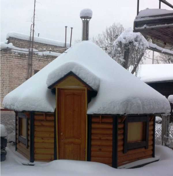 Конструкция выглядит, как обычный небольшой домик. Не лишним будет установить окна и двери. Кроме этого, позаботьтесь об установке отопительной системы, если будет очень холодно. В принципе, можно использовать обычный мангал.
