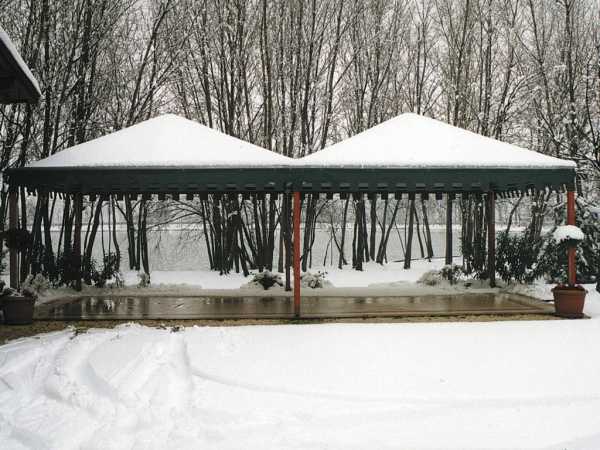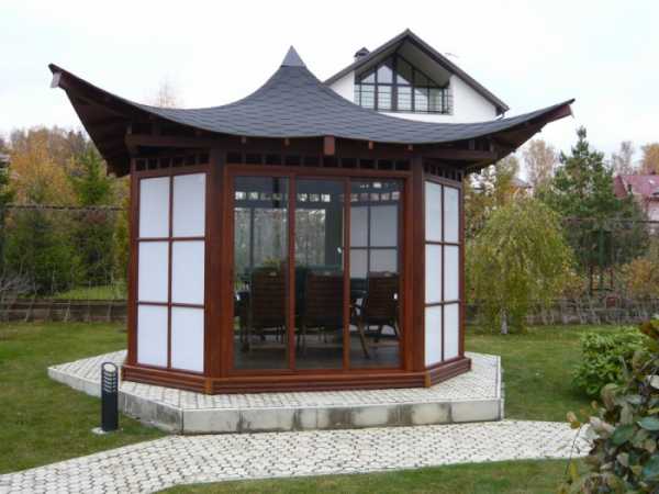 Можно остановить свой выбор на японском или китайском варианте. Такие зимние беседки будут отличным украшением на вашем участке.
