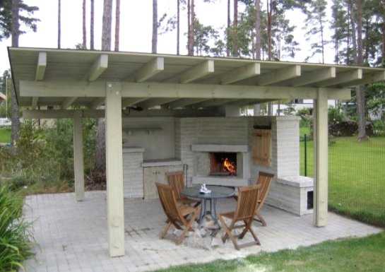 При устройстве деревянного строения с барбекю необходимо позаботиться о противопожарной безопасности.