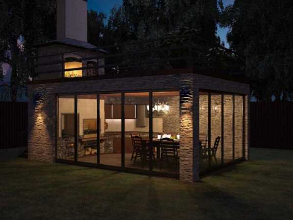 В зимний период такое помещение достаточно легко отапливается, его используют круглогодично. Применение в проектах панорамного остекления позволит оптимально решить обустройство летней кухни, трансформировав ее в зимнюю. Тогда не будет необходимости установки мангала в самом помещении.