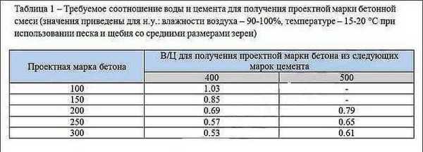 Таблица 2 — Бетон М400 из цемента, песка и щебня. Пропорции.