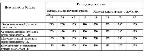 В зависимости от используемой марки связующего, при производстве бетона закладывается такое количество основных компонентов: