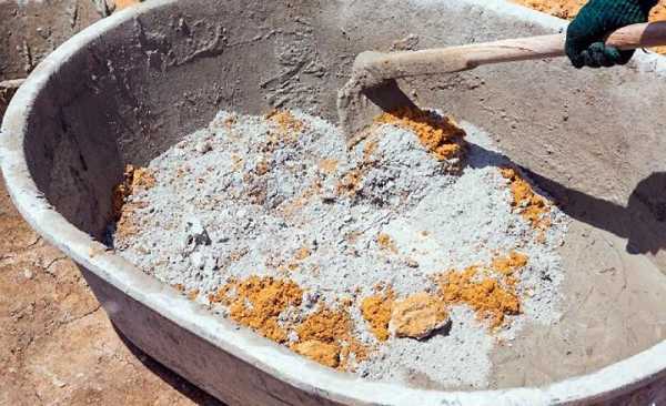 В индивидуальном строительстве раствор для дома или фундамента часто приготавливается, когда в качестве мерила используют обычные ведра. Чтобы уменьшить погрешность в отмеряемых таким образом пропорциях, щебень и песок в ведрах следует слегка придавливать и выравнивать по краям ведра. Сухие стройматериалы перемешиваются в подходящей емкости или бетономешалке. Если резервуар самодельный, то в смеси формируются неглубокие канавки для цемента, куда его и следует высыпать. Все компоненты тщательно перемешиваются, пока не получится равномерная одноцветная масса.