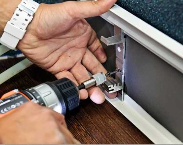 - Через технологические отверстия в кронштейнах ввинчивают шурупы в дюбель.