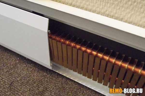 Теплый плинтус – это радиатор отопления нового поколения. Состоит он из медных труб с ребрами, которые закрыты декоративным кожухом. Внешне он похож на обычный плинтус, но по размерам раза в два больше.