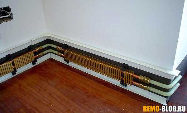 Чаще такие системы устанавливают в частных домахОсобый комфорт в жилых помещениях может создать собранный водяной тёплый плинтус своими руками. Если посмотреть на водяной плинтус с конструктивной точки зрения, то мы увидим компактные «растянутые » в длину модули.
