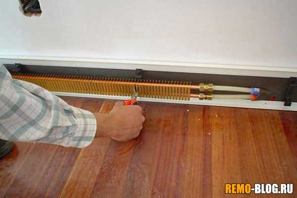 Принцип обогрева помещения жидкостным конверторным плинтусом ничем не отличается от обогрева другими приборами.