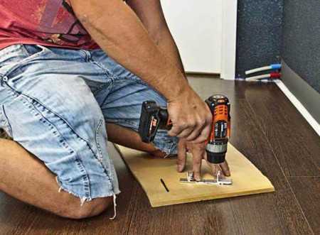 - Сверлят отверстия под дюбеля в местах, где должны устанавливаться крепления.