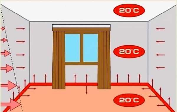 - нагрев стеновых поверхностей, который защищает от появления плесневых микроорганизмов и грибков. Подходит для угловых помещений;