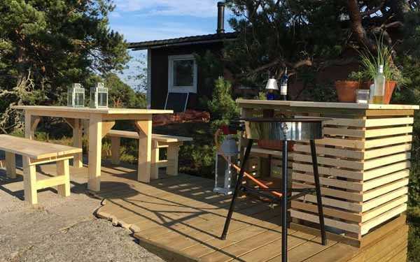 Места для организации обеденного стола и мест для сидения, требуется совсем немного. Для этого лишь необходимо прикупить стол и стулья, которые будут находиться на улице, или же Вы будете их выносить при необходимости.