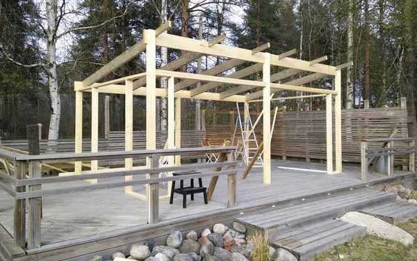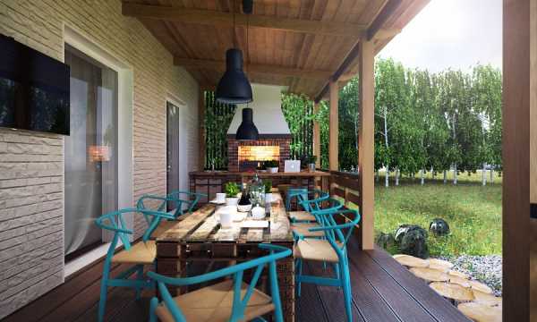 Прекрасно, если Вы сможете сделать навес, и трапезная зона будет находиться именно под ним. Тогда Вам совершенно не будут страшны любые непогоды.