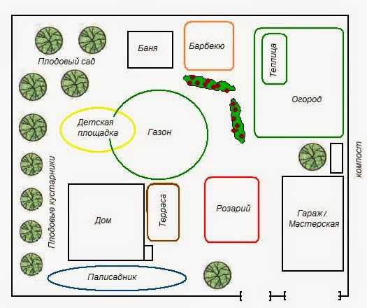 И уже исходя из этого приступать к разделению участка на функциональные зоны. Но следующие объекты выступают основой в любом плане: