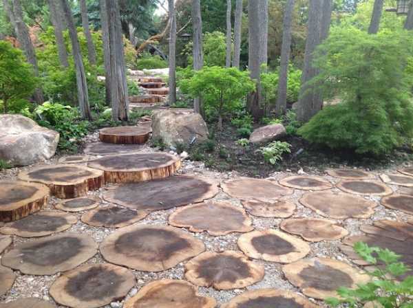 В последнее время становятся модными деревянные дорожки, но это вариант на любителя. Дешево и сердито — обычные гравийные тропинки. Когда решите прогуляться по ним босиком — скупость напомнит о себе.
