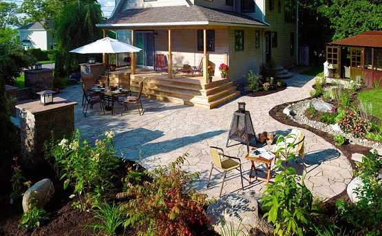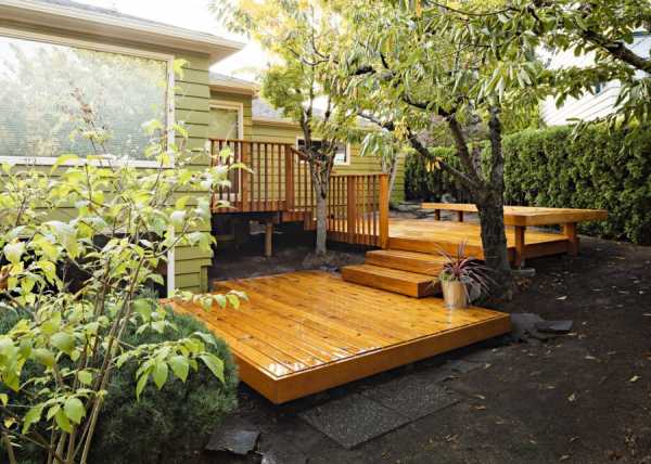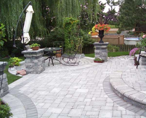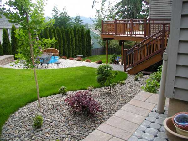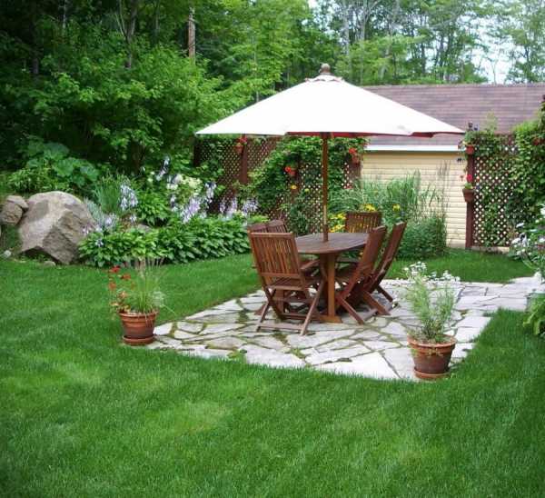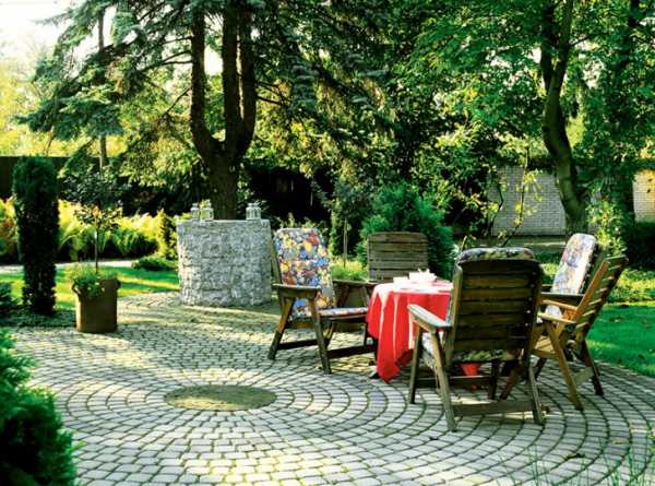 На заднем дворе площадку также можете выложить при помощи каменных плит и бетона, также возможен вариант засыпания гравием, галькой…