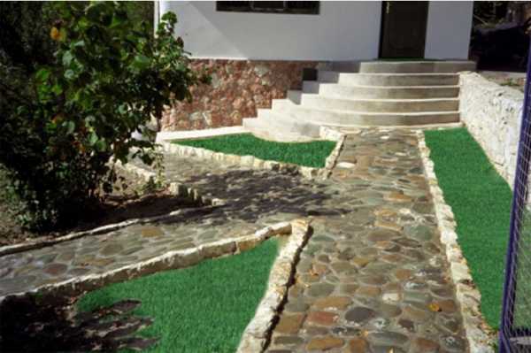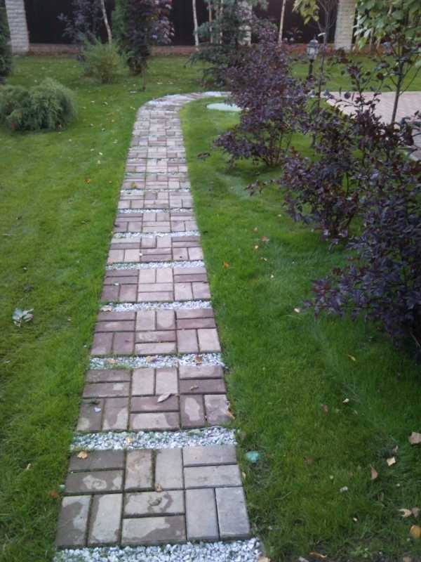 Так, современные материалы позволяют встраивать светильники прямо в дорожку, при дневном свете они будут мало отличаться от остальных элементов. Помимо цены к минусам стоит отнести относительную сложность укладки — без соблюдения технологических норм, качественной подложки и дренажа, такая тропа быстро потеряет презентабельный вид.