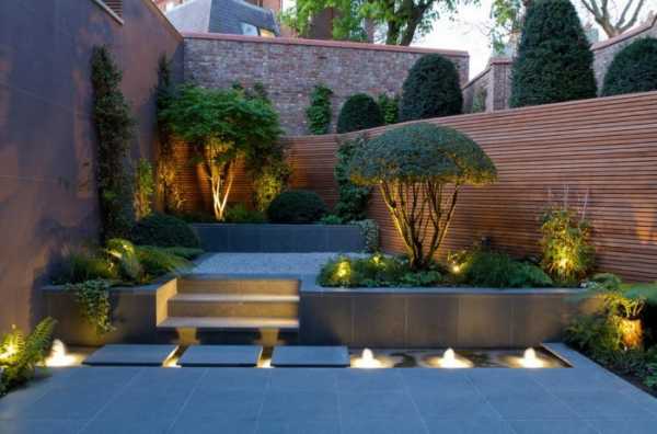 Обратите внимание! Благодаря точечному освещению двора, вы можете выделять на участке значимые предметы декора в ландшафтном дизайне.