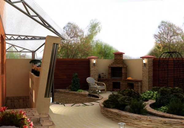 В этой части двора Вы будете собираться со своей семьей, а также сможете собирать своих близких друзей для приятного и веселого времяпрепровождения. Интересные способы оформления такого участка, смотрите на фото дизайна частного двора.