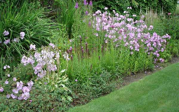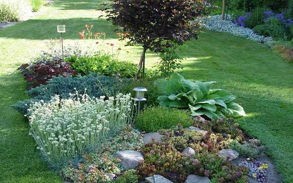 Парадная клумба с неприхотливыми многолетниками хорошо переносит как жару так и отсутствие регулярного полива.