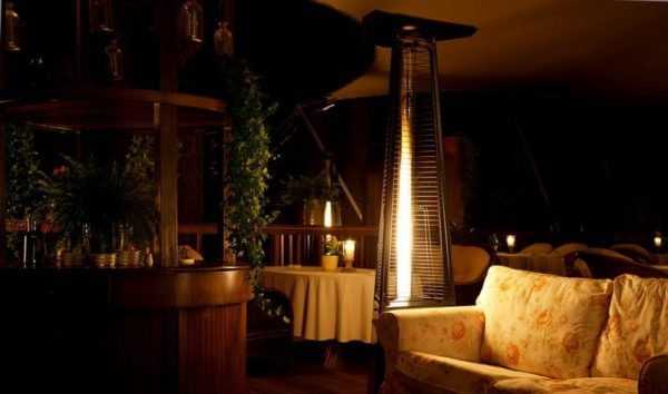 Пирамидальный обогреватель распределяет тепло вокруг себя более равномерно, нежели торшерный