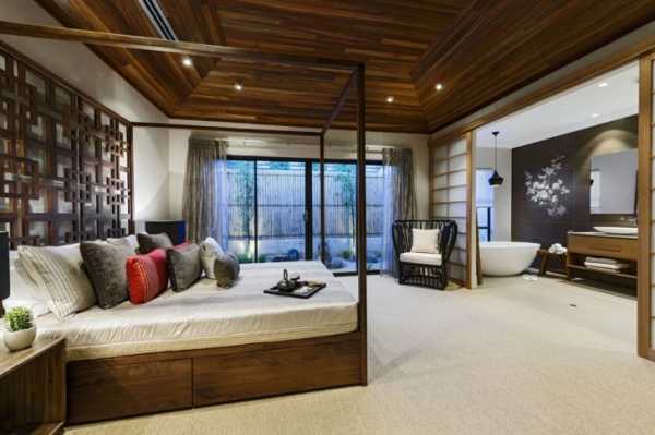 Добавить японского колорита в дизайн деревянного дома помогут лампы из рисовой бумаги, настенные иероглифы, лаконичные ширмы.