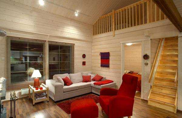 Дизайнеры, работающие с оформлением интерьера деревянных домов, отмечают несколько особенностей при его оформлении: