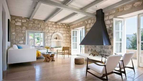 Небольшое количество натурального камня тоже найдет свое место в интерьере деревянного дома в духе средиземноморья. Он неплохо будет выглядеть на каминной облицовке, отдельных частях стен или колоннах.