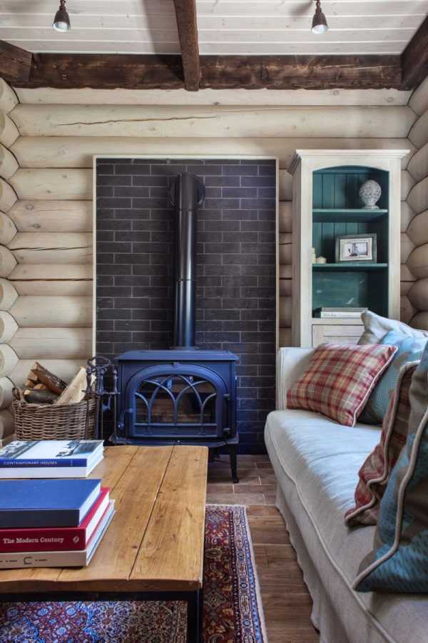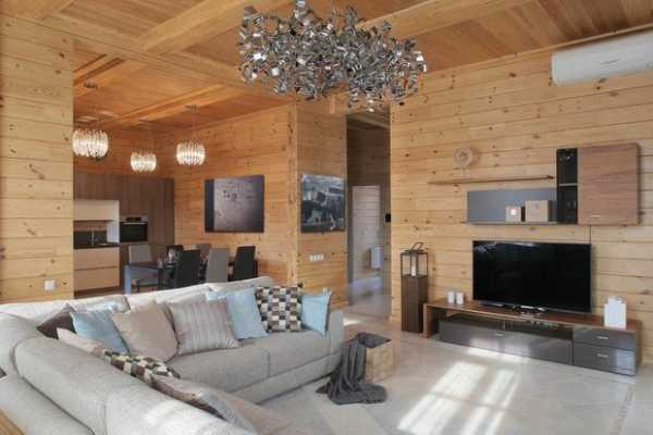 Для дома из дерева интерьер комнаты, где планируется прием гостей, продумать немного сложнее, чем в квартирах из кирпича и бетона. Деревянные стены настолько самодостаточны, что другие элементы дизайна приходится выбирать в строгом соответствии с фактурой дерева. Естественная природа иногда совершенно не совмещается с дизайнерскими тенденциями современности. Например, стиль хай-тек будет плохо смотреться на фоне деревянных срубов, а обилие металлических предметов нарушит природную гармонию натурального дерева.