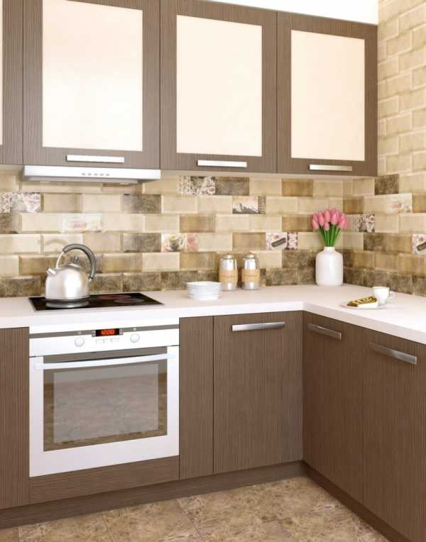 Плитка практична во всех отношениях, поскольку не боится ни температур, ни жидкостей, ни химии. Смотрится она гораздо дороже МДФ, да и с дизайном можно «поиграть».