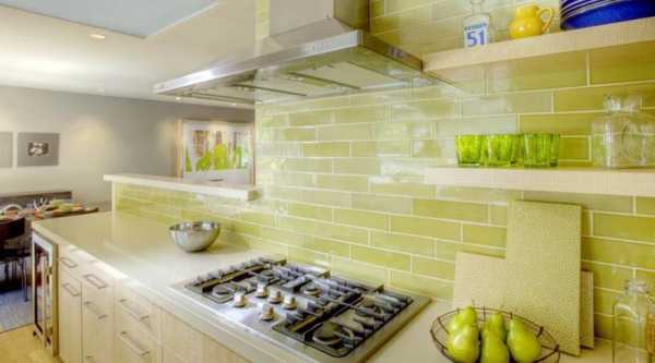 Керамическая плитка – традиционный элемент на кухне: она прочна, проста в уходе, не портится от воздействия жиров и влажности.