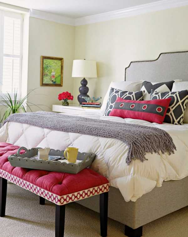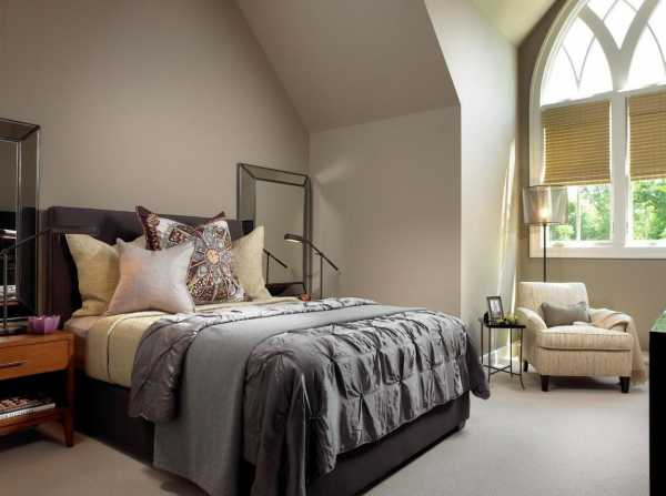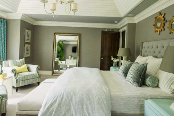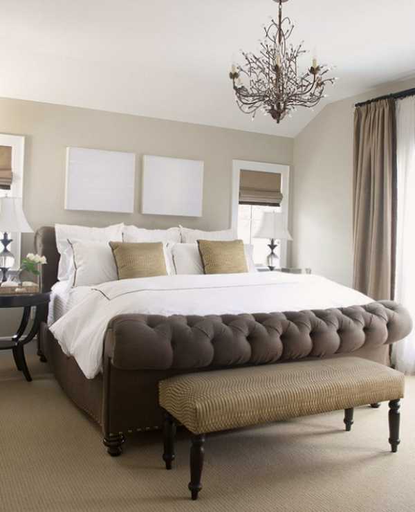 Бежевый, белый и серый цвета в дизайне большой спальни