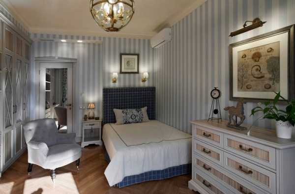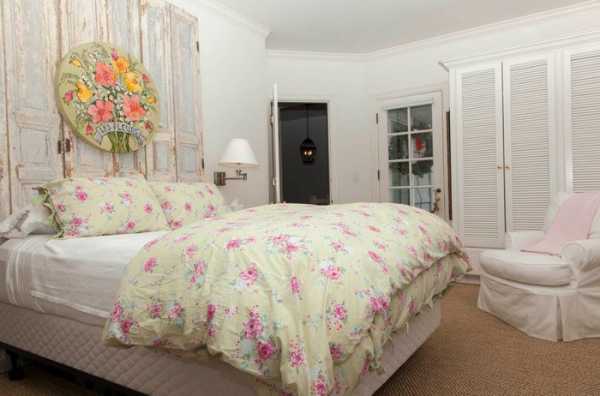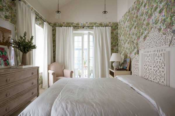 Идеальная стилистика для дачи. Тут преобладают белые и голубые цвета. Мебель в спальне подбирается с отсылкой на старину. Отделка потолка и стен производится штукатуркой и акриловыми красками. Шторы подбираются с цветочными узорами. Один из самых романтичных вариантов оформления интерьера.