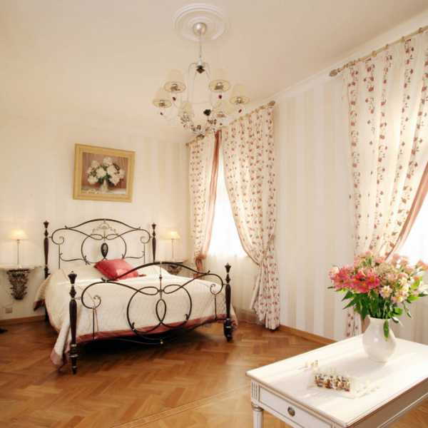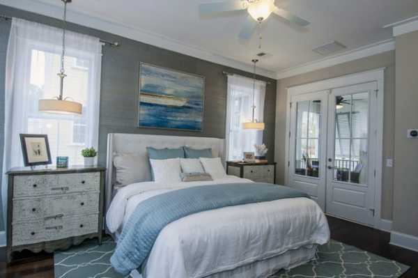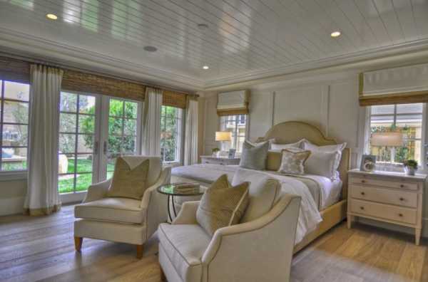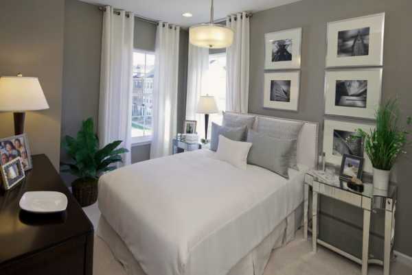 Для небольшой спальни идеально подойдет отделка стен и мебели, выполненная в светлой гамме. Если вы решили расширить пространство, то стены можно отделать фотообоями, в том числе, картинами с перспективой. Для современной спальни подойдет серый оттенок, обилие хромированных деталей. Для спальни загородного дома с балконом и собственной гардеробной вполне можно использовать стиль прованс или шебби-шик, тогда отделка в белых тонах еще больше подчеркнет роскошь вашей спальни.