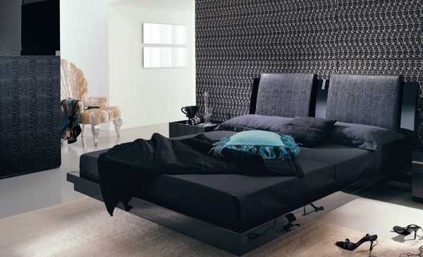 Кровать же нужно выбирать на свой взгляд. Стоит отметить, что современный стиль не требует каких то необычных форм, можно обойтись простой большой кроватью, но с дизайнерским оформлениям.