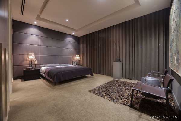 Сегодня дизайнеры предлагают использовать для оформления спальни практически любые оттенки, особенно если речь идет о большой комнате, в которой можно воплотить практически любые задумки. Конечно же, чаще всего, заказчики останавливаются на светлой комнате, поскольку в ней все должно быть уютным, настраивающим на отдых. Однако не менее красивые решения могут быть выдержаны и в темных оттенках. А уюта можно добавить при помощи освещения, зонирования, а также стильного текстиля, который очень актуален для украшения спальни.