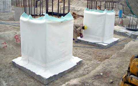 При монтаже фундамента площадь геополотна должна быть больше площади основания здания. Материал укладывают с превышением на один метр от стен дома. Полотно помогает сохранять свойства бетона, препятствуя просачиванию «цементного молочка». Тем самым способствуя устойчивости и прочности фундамента.