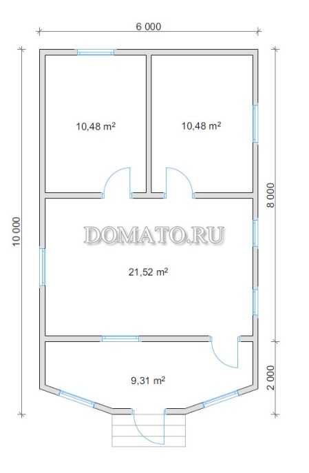 Планировка одноэтажного дома с параметрами 10 на 6 метров – процесс несложный, но требующий особого внимания к распределению площади. При желании, на выделенном пространстве легко поместятся все необходимые помещения: