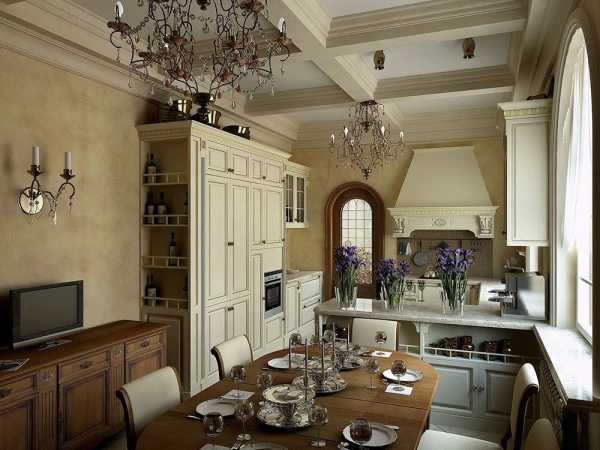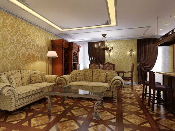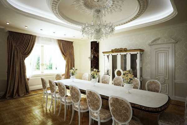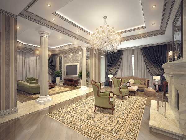 Отделка жилого помещения в классическом стиле предполагает немалые жилые пространства: дверные и оконные проёмы дополняются лепниной, используется массивная мебель, большие интерьерные люстры. В целом, классика предполагает некоторую помпезность интерьера, отсылку к дворцовым отделкам.