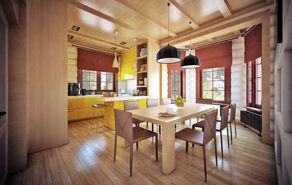 В целом, помещения в деревянном доме не рекомендуется оформлять с использованием ярких, контрастных стилей, изобилия аксессуаров и массивной мебели, чтобы визуально не «перегрузить» интерьер.
