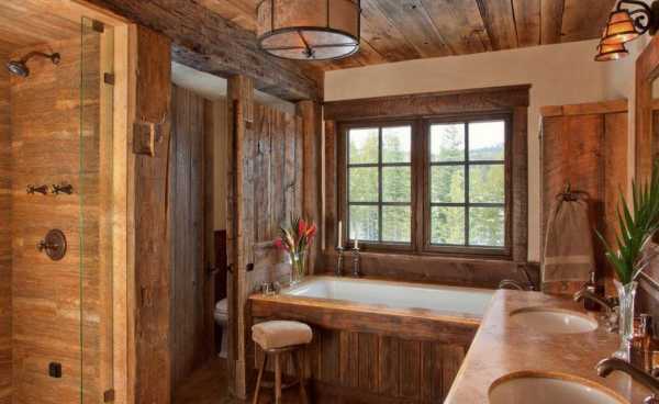 Санузлы и прихожая в загородном доме часто делаются просторными, поэтому для их оформления можно использовать стилизованные осветительные приборы, фактурные отделочные материалы и характерное для выбранного стиля сочетание цветов.