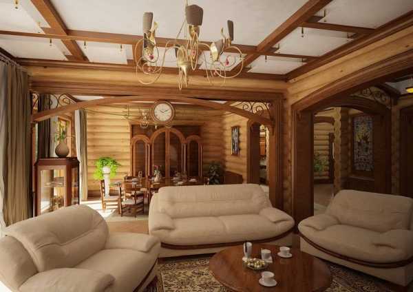Отличие дома, построенного из древесины, состоит во внешнем виде и приятном микроклимате, которые создаются натуральным материалом. Качественная древесина предполагает лаконичные украшения, призванные подчеркнуть её «естественную красоту». Поэтому в дизайне подобных домов редко используется оклейка стен обоями или облицовка панелями из различных материалов. Исключение составляют случаи, когда отделка носит утилитарный характер: необходимость скрыть провода и технологические зазоры.