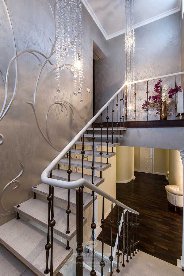 Подбирать люстру для лестницы нужно в соответствии с дизайном дома: для особняков в дворцовом стиле подойдут модели с водопадом хрустальных подвесок, для хай-тека – неоновые световые столбы, а для коттеджа в стиле прованс или кантри – светильники с матовыми стеклянными плафонами разного размера и светодиодами теплого свечения.