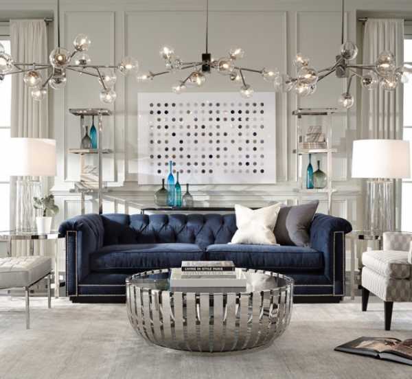 На фото: Каскадная люстра в декоре первого этажа в доме в стиле арт-деко на РублевкеКаскадная люстра из стекла, металла или хрусталя – главный претендент на роль стилевого акцента в дизайне частного дома. Такие светильники можно использовать как в одном экземпляре, так и парой. Первый вариант актуален для парадной гостиной или холла и позволяет привлечь внимание к центральной части помещения. А ко второму варианту дизайнеры часто прибегают при оформлении комнат со студийной планировкой. В этом случае с помощью парных каскадных люстр обозначают симметрично расположенные функциональные зоны – столовую и гостиную.
