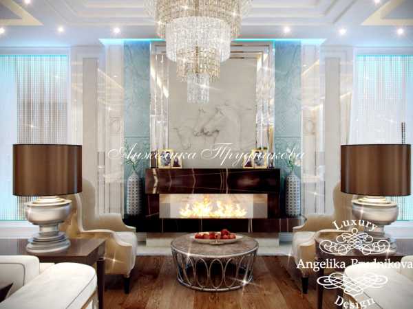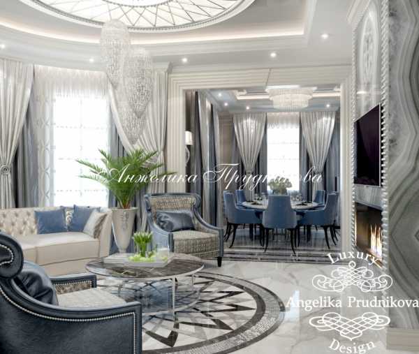 На фото: Голубые акценты в интерьере гостиной с элементами барокко и классицизма в КП «Миллениум Парк»Голубые акценты не просто оживляют дизайн дома в стиле барокко на фото, но и создают внутри помещений легкую и романтическую атмосферу. Они выглядят благородно и прекрасно гармонируют с богатым лепным декором. А чтобы интерьер не казался однообразным, Анжелика Прудникова использовала в нем несколько оттенков голубого цвета, украсила яркими деталями потолок, арки и текстильный декор, а также подсветила голубой и бирюзовой LED-лентой крупные архитектурные элементы и мебель.