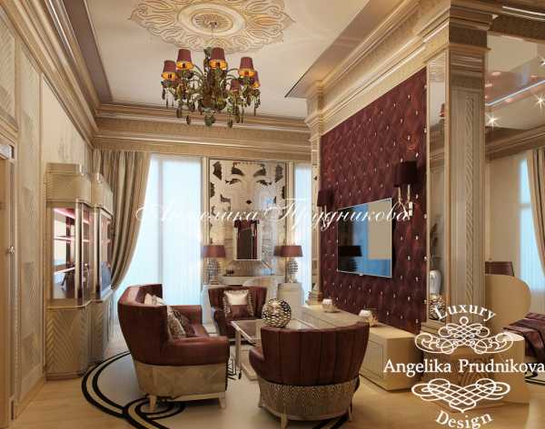 На фото: Гостиная в стиле ар-деко с бордовыми акцентами в частном доме в СамареВинные оттенки способны обогатить дизайн любого частного дома, но по-настоящему роскошно они смотрятся в классических интерьерах с мраморными полами, украшенными лепниной потолками, роскошными хрустальными люстрами и элегантными зеркальными панно. Самым лучшим фоном для мягкой мебели и портьер винного цвета станут кремово-бежевые стены. А добавить такому интерьеру современную нотку помогут светодиодная подсветка и броские металлические аксессуары.