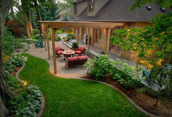 Дизайн участка, на котором расположен загородный дом, основывается на потребностях хозяев и особенностях использования этой территории. Например, если землю вокруг дома предполагается использовать как небольшой огород, ландшафтный дизайн ограничится созданием крепких тропинок и постройкой хозяйственного помещения (сарая, кладовой). Если же двор предполагается оборудовать небольшой детской площадкой, крытым бассейном, беседкой и баней – оформление будет включать не только отделку дорожек, но и внешнее оформление этих зданий.