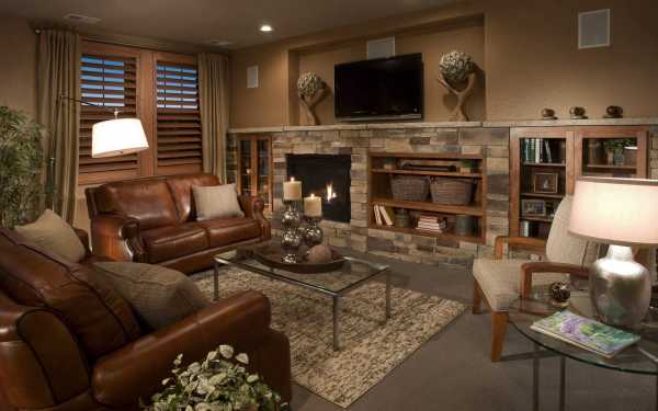 Фальш-камин или электрическая модификация позволяют использовать камин в качестве декорации. В таком случае материалы для отделки могут быть любыми, а стиль ограничен только фантазией владельцев.