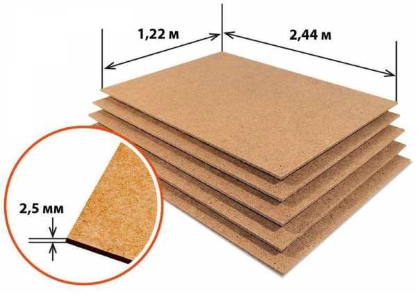 Ввиду того что отличия между ДВП и оргалитом незначительные, при определении габаритов учитываются параметры, присущие всем твердым плитам. Наиболее популярные варианты: