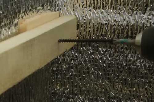 После закрепления вертикальных реек между ними в горизонтальном положении крепим короткие отрезки реек. Делаем это так, чтобы у нас получились ровные ячейки, размером не больше 30 на 30 см. Обрешетка стены готова. Перед креплением листа оргалита лучше сделать обрешетку на всех остальных стенах, чтобы она не накладывалась на уже закрепленные листы. Конечно, оргалитовые панели отнимают некоторое пространство, но его можно использовать для шумоизоляции, утепления или, например, чтобы скрыть проводку и другие коммуникации в доме.
